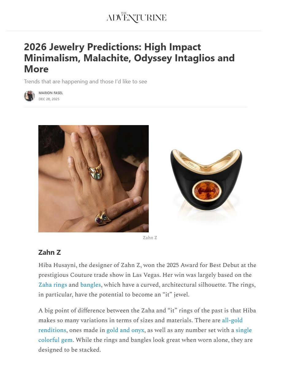 2026 Jewelry Predictions: High Impact Minimalism, Malachite, Odyssey Intaglios and More.