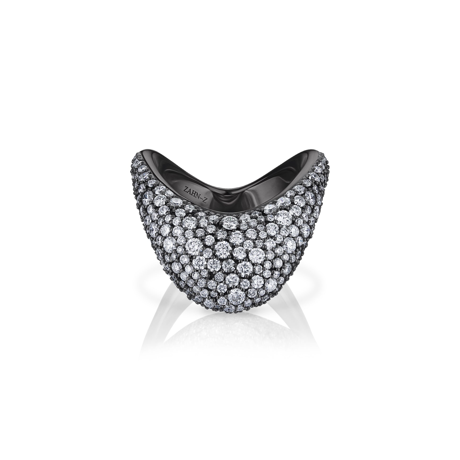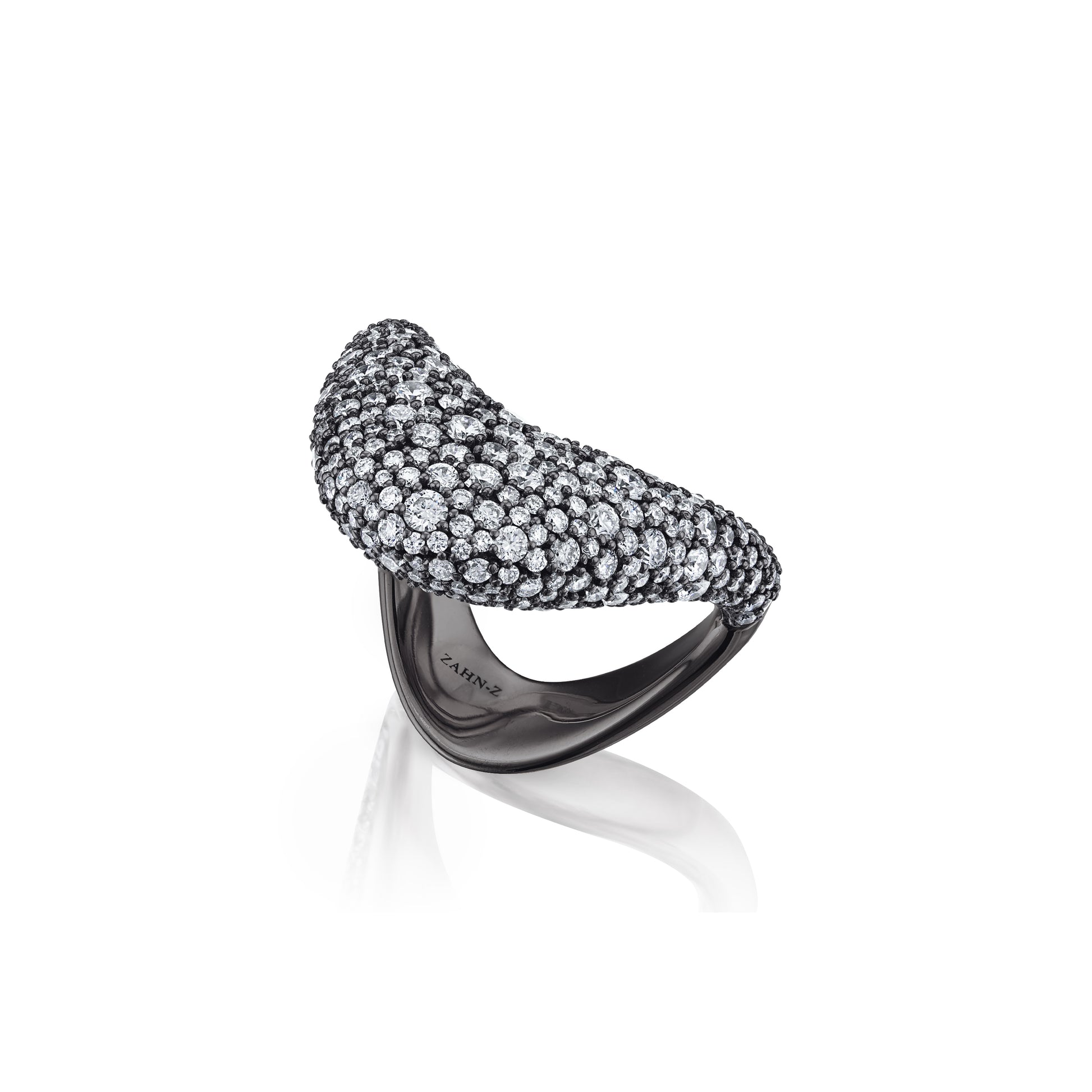 Big ZAHA Unisex Pavé White Diamonds & Blackened Platinum