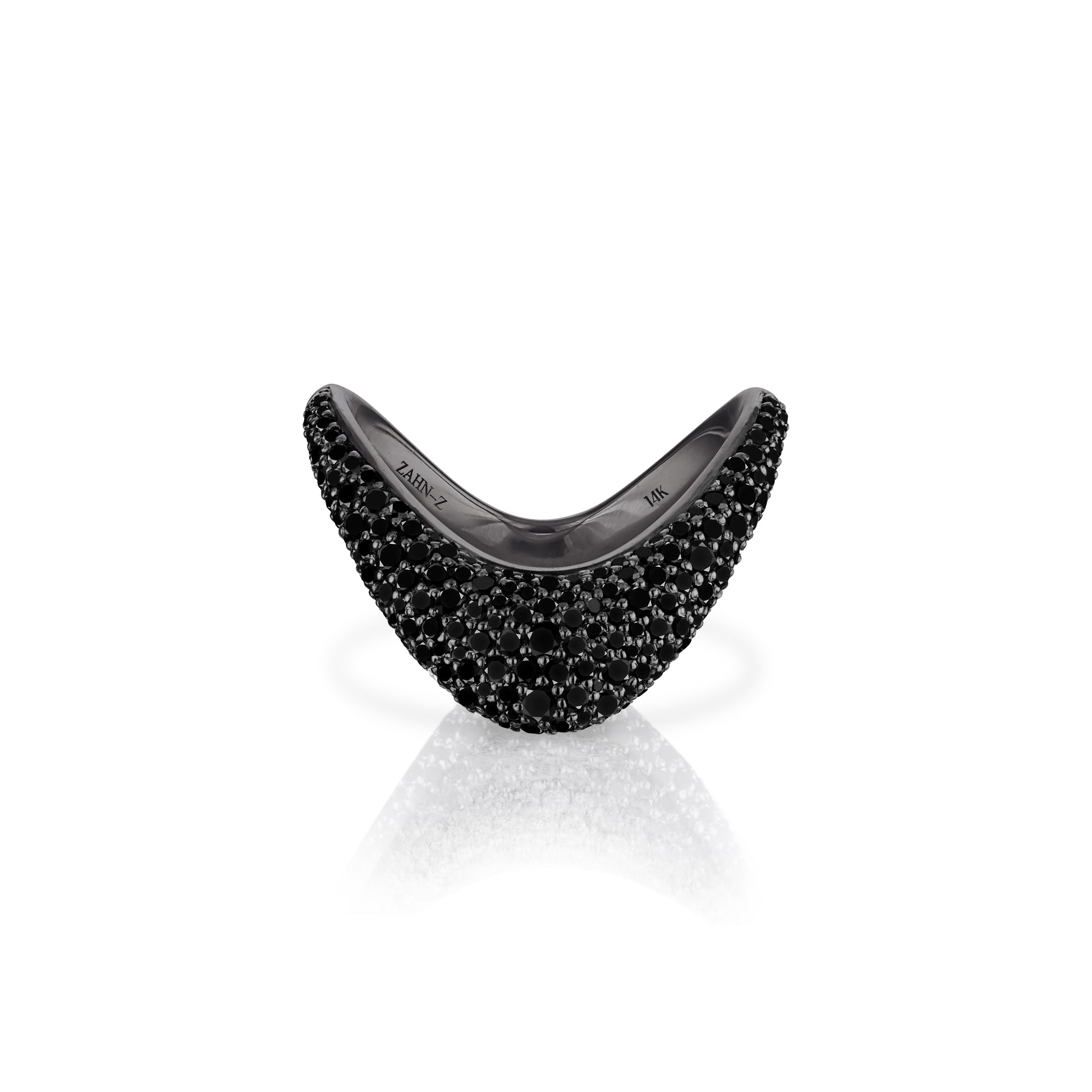 Petite ZAHA Unisex Pavé Black Diamonds & Blackened Platinum